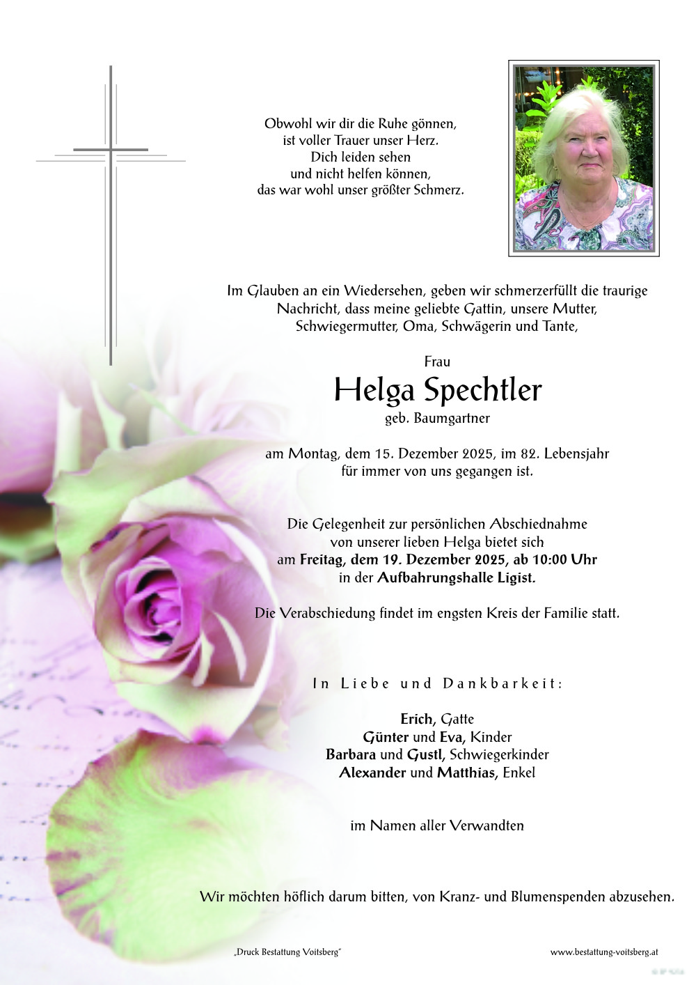 Ich möchte speziell Eva und Günter, dem Ehemann Erich sowie allen Angehörigen mein aufrichtiges Beileid ausdrücken und viel Kraft für die kommende Zeit wünschen.