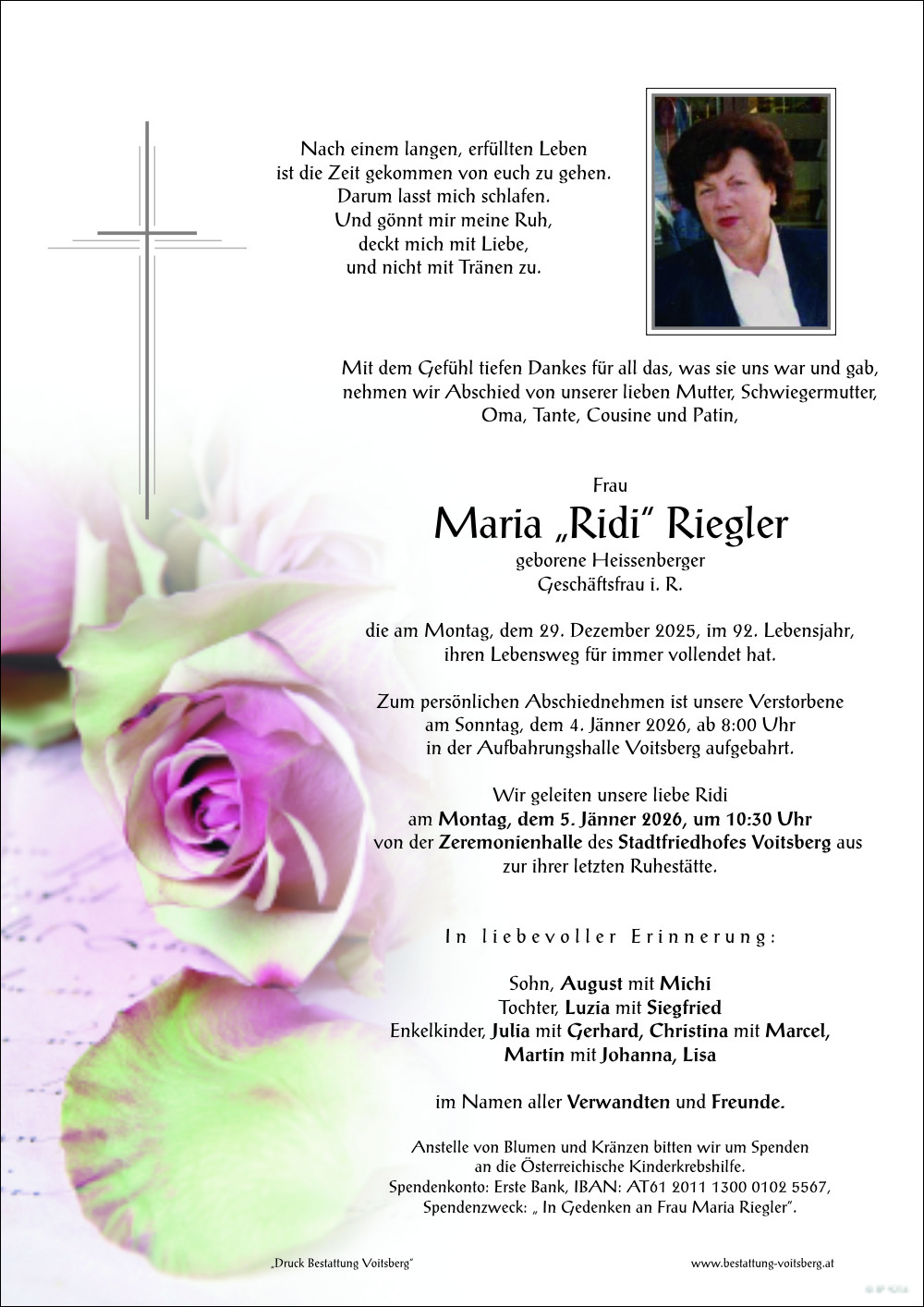 • Ruhe in Frieden Frau Riegler.Waltraud und Horst Penz says: